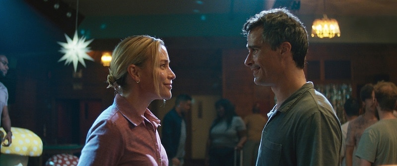 Décalé dans le ton, Amour Apocalypse l’est aussi dans sa forme. Pour faire écho à ce monde en train de s’effondrer, l’image est volontairement rugueuse. Son grain provient d’un tournage en 35mm qui rappelle la saleté de nos paysages modernes. Dans ce monde en train de cramer sous nos yeux, tout est écrasé par une lumière crépusculaire et caniculaire. Cet aspect volontairement poussiéreux avec une teinte orangée évoquant les tempêtes de sable suffocantes est inspiré à la fois par Short Cuts (1993) de Robert Altman et Red Rocket (2021) de Sean Baker – lire notre critique. Traversé de menaces, à l’image de la tempête dévastatrice qui s’abat sur le centre d’appel de Tina, l’ambiance générale du film est au désespoir. Et pourtant, comme une fleur qui émerge dans une faille du béton, une romance fragile avec un maigre espoir de survie trouve un chemin parmi le chaos.