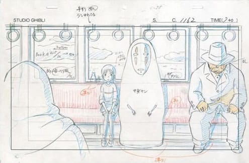 L’étude de ces nombreux layouts permet de comprendre la méthode de travail collaborative qui mène à la création d’un film d’animation chez Ghibli et met en lumière les styles des réalisateurs Miyazaki et Takahata. Adepte du ressenti, le créateur de Princesse Mononoké (1997) ou encore Mon Voisin Totoro (1988) veut surprendre avec son animation, il ne cherche pas à respecter les proportions et privilégie un dessin instinctif. Le second, créateur des films Le tombeau des lucioles (1988) et Souvenirs goutte à goutte (1991), a le souci du détail, une minutie qui se remarque sur certains layouts corrigés de sa main.