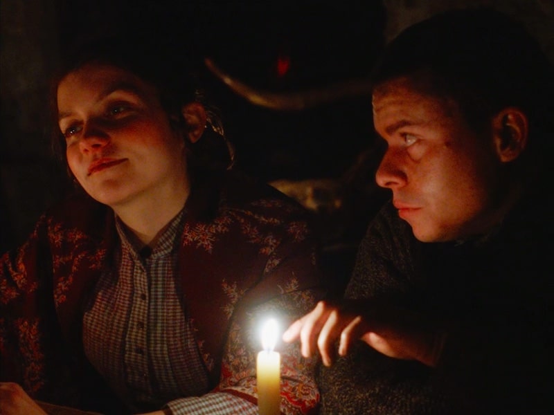 L’ambiance est d’autant plus intimiste que les animaux sont conviés à l’intérieur des habitations prodiguant un fond sonore constant qui se mêle au crépitement du feu dans la cheminée pour réchauffer tout ce petit monde. L’Engloutie donne également vie à ce hameau en faisant intervenir des acteurs majoritairement non professionnels. Des habitants qui s’expriment en patois au grand dam de l’institutrice qui reprend constamment les enfants pour qu’ils s’expriment en français. Le visage des acteurs marqués par le froid est un symbole de cette volonté d’un réalisme qui fonctionne ici parfaitement, servi par une image dont le grain uniformise l’obscurité des habitations et la blancheur aveuglante de la neige au soleil. Deux extrêmes qui symbolisent la mission de la jeune institutrice, apporter la lumière du savoir aux habitants de ce hameau coupé du monde. Une façon aussi d’inviter le spectateur à scruter l’obscurité des plans pour dénicher les indices éventuels d’un glissement de la réalité.